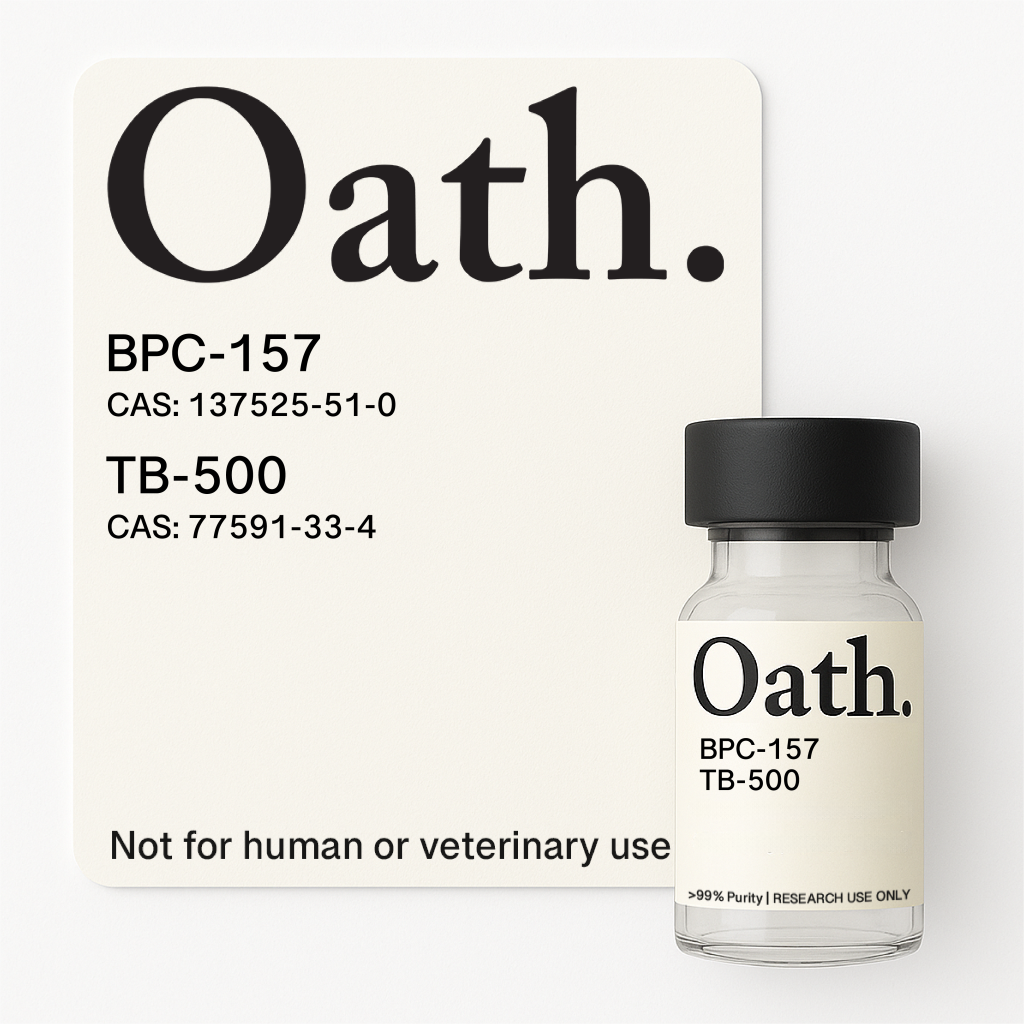GLOW is a three-peptide research blend totaling 50mg of lyophilized powder in a 1:7:2 ratio. It contains BPC-157 (5mg), a 15-amino-acid synthetic peptide derived from a partial sequence of human gastric juice protein; TB-500 (10mg), a 43-amino-acid synthetic fragment of the protein thymosin beta-4, which is found in most animal cells; and GHK-Cu (35mg), a copper-bound tripeptide first isolated from human plasma in 1973. The powder has a light blue tint from the copper component. A higher-dose option is also available (10mg BPC-157, 10mg TB-500, 50mg GHK-Cu) for studies requiring increased peptide concentrations.